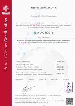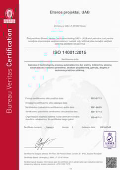 Įmonės kokybės vadybos ir aplinkos apsaugos sistema yra atestuota pagal ISO9001:2015 ir ISO14001:2015 standartų reikalavimus.